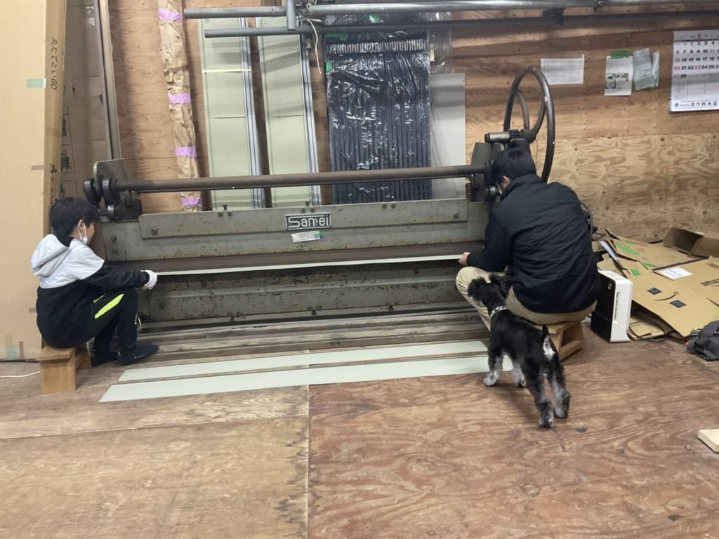 現場には行かずに、加工場で次の現場の準備をしました。今回はリフォームのお宅なので、既製品ではできないので、自分たちで作ります。